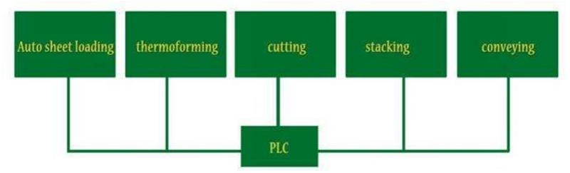Sistem de încălzire, sistem de control al aerului, sistem de control electric și PLC, sistem de perforare, stivuire a descompunerii produsului și sistem de redobândire automată și